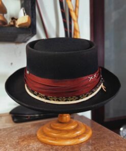 Crafted with a felt finish, the Porkpie Hat was uniquely designed with a round, telescope crown. This high-quality, statement hat features a luxurious felt finish appropriately worn for any occasion.