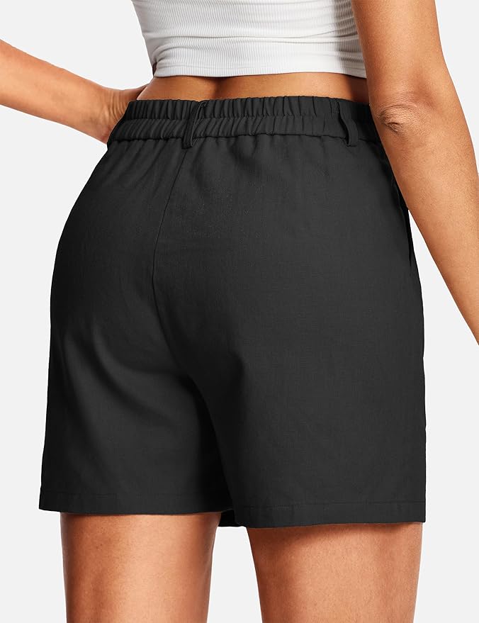 - Lightweight & Breathable Linen-Blend Fabric: Experience the exceptional comfort of these women’s linen shorts, crafted from a premium linen-cotton blend for superior airflow. The quick-drying, moisture-wicking fabric of these womens linen shorts ensures you stay cool and fresh all day long